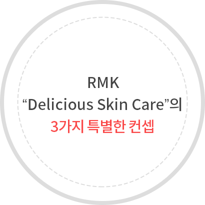 "내추럴 푸드"의 에너지를 피부 본연의 능력으로 변화시키는 RMK의 "Delicious Skin Care"의 3가지 특별한 컨셉으로 현대 여성의 피부 환경과 라이프 스타일에 맞춰 선택이 가능한 라인업을 준비했습니다.